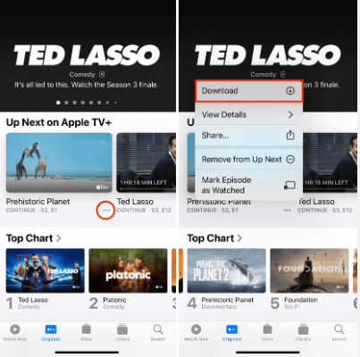 Schritt 1. Öffnen Sie den Hauptbildschirm der App, um die verfügbaren Apple Originals anzuzeigen, und tippen Sie auf die „Drei Punkte“ bei Ihrer bevorzugten Sendung.