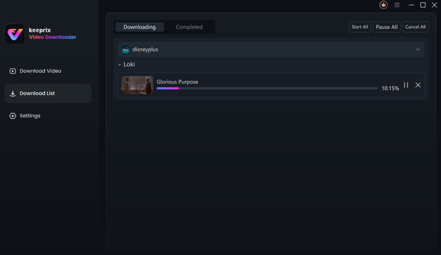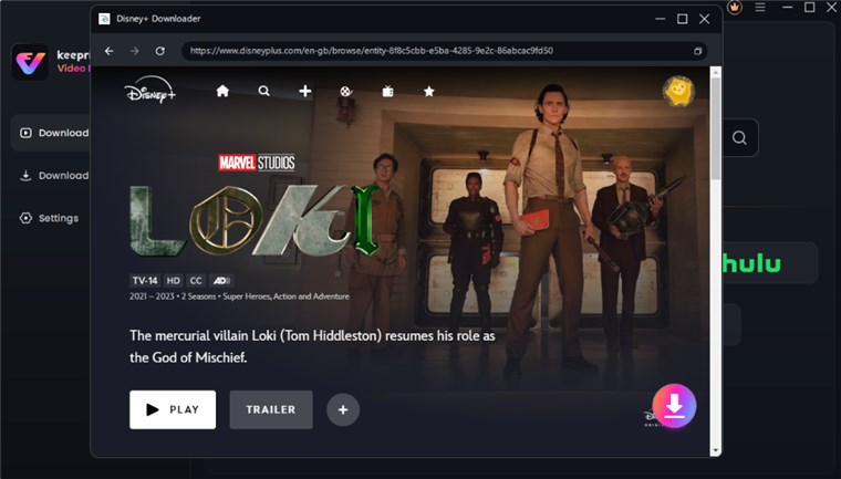 Schritt 1. Laden Sie Keeprix Video Download herunter und starten Sie es auf Ihrem Gerät. Wählen Sie die Disney Plus-Plattform und melden Sie sich bei Ihrem Disney+-Konto an.