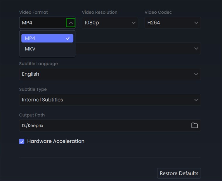 Schritt 4. Wählen Sie die Videoauflösung, den Ton, die Untertitel und den Untertiteltyp aus. Wählen Sie MP4 als Ausgabeformat. Klicken Sie anschließend auf die Schaltfläche „Herunterladen“.