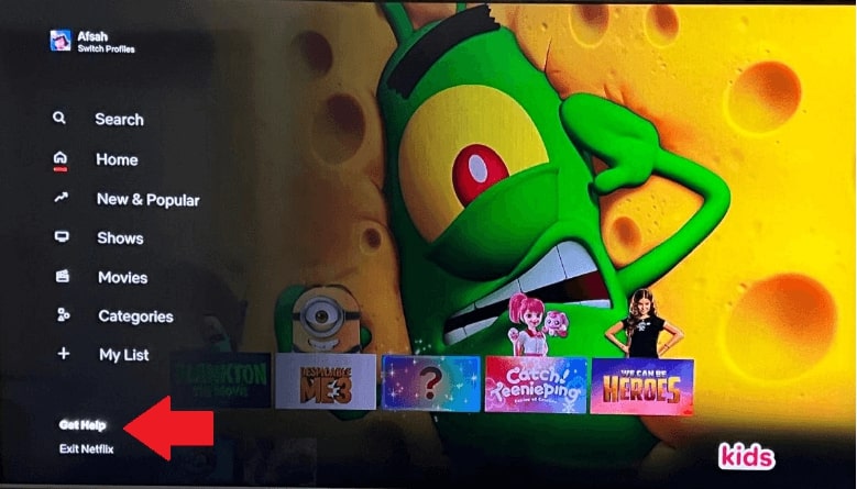 Schritt 1. Öffnen Sie die Netflix-App und wählen Sie im linken Menü „Hilfe“.
