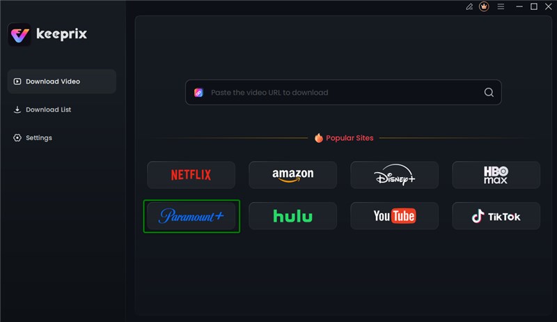 Laden Sie Keeprix Video Downloader auf Ihren PC/Mac herunter. Starten Sie Keeprix Downloader auf Ihrem Computer. Wählen Sie die Paramount+-Plattform.
