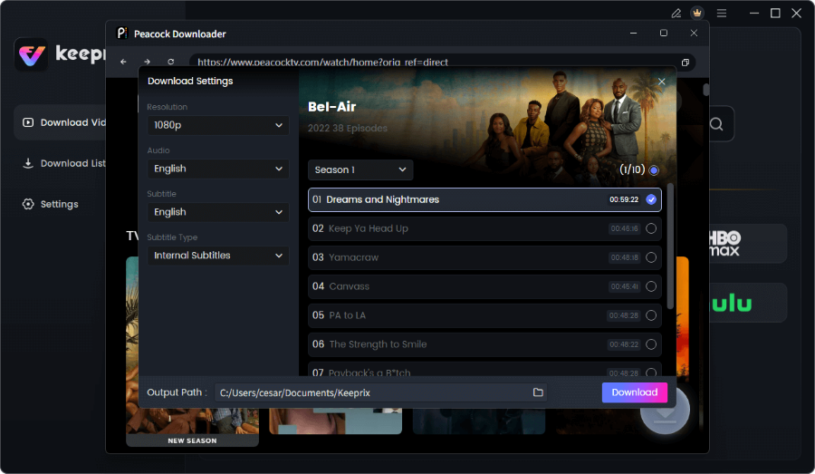 Spezialisierte Software wie der Keeprix Downloader ermöglicht es Ihnen, Peacock-Videos als MP4- oder MKV-Dateien auf Ihrem Computer zu speichern. Einmal heruntergeladen, sind die Dateien immun gegen Fehler wie OVP 00012, Server-Ausfälle oder Internetprobleme.
