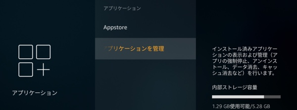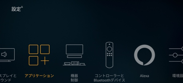 Step1.ホーム画面からFire TVの設定に入り、「アプリケーション」を選択します。