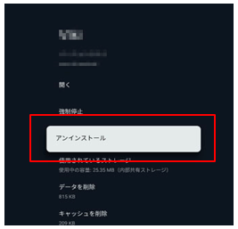 Step2.「アンインストール」を選び、アプリをテレビから削除します。