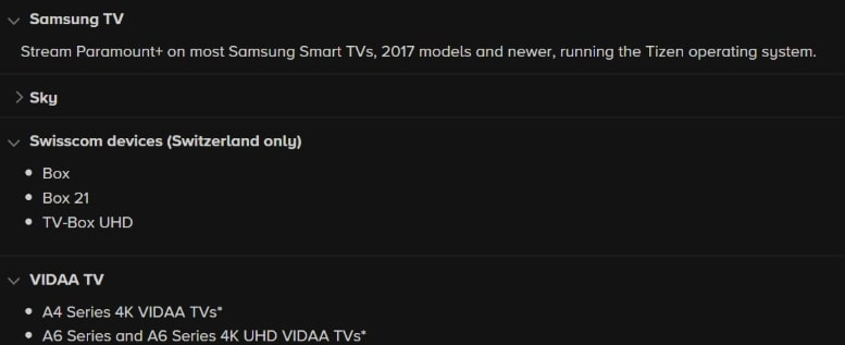 ウェブブラウザで公式Paramount+サイトにアクセスし、対応デバイス一覧を確認します。